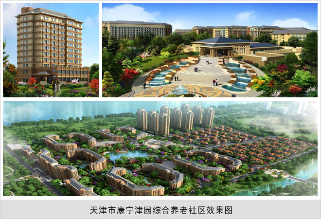 据悉,全国规模最大的“天津市康宁津园养老社区”即将落成,预计2015年年底投入使用,首批对外开放690套老年公寓,未来将形成