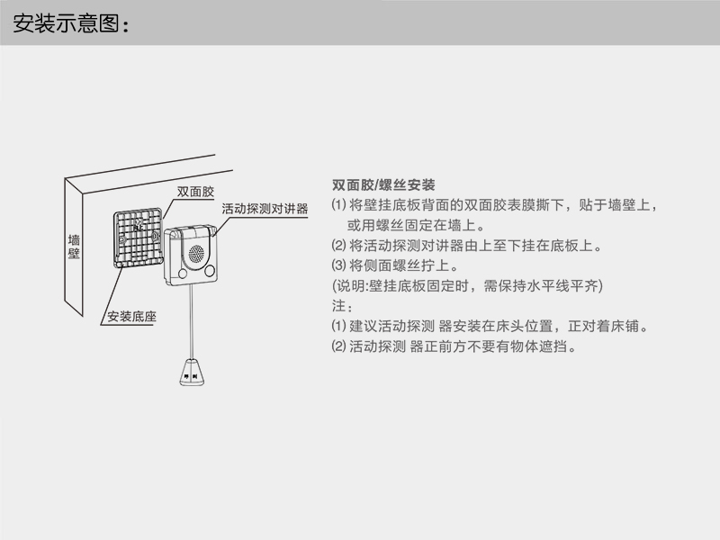 ? 粘贴或86式安装在长者床头;采用4G Cat.1通信技术,利用运营商基站网络传输,出厂已预装通信卡、即买即用。