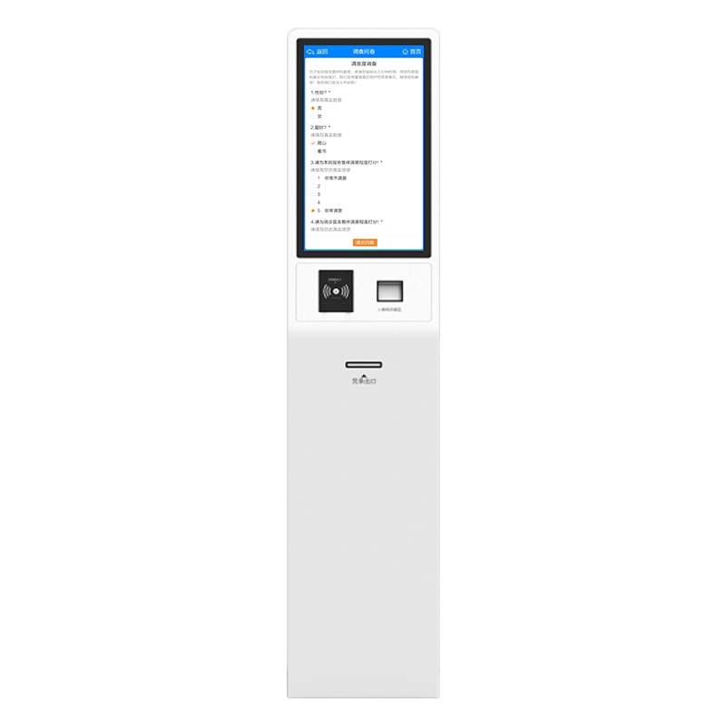 ? 采用21.5英寸触摸屏,落地式摆放在公共区,为患者提供服务评价、就诊体验反馈等服务。