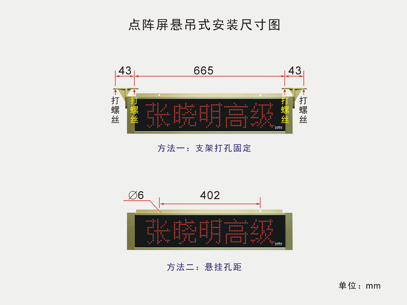 点阵屏悬吊式安装尺寸图