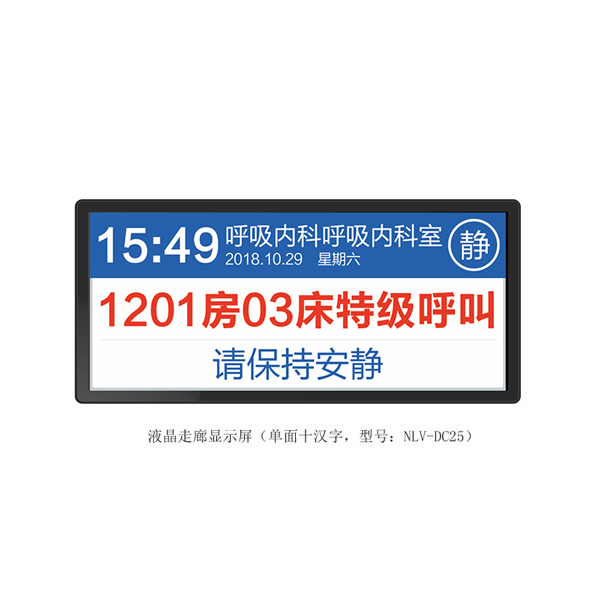 25英寸液晶屏设计,金属边框,吊装在走廊过道上。